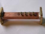 Homebrew : Kuhne transverter module, Post filter from RSGB, G8ACE OCXO kit , G4DDK multiplier chain, Minikits 1GHz - 12 GHz multiplier , amplifier chain with extra pipecap filtering to deliver 40mW LO drive to mixer module, Toshiba 1 W amp used on receive and Transmit via a Hubert Krause fabricated 4 port W/G switch with electronic switching via a servo motor., flexible WR42 W/G to 1 ft dish with penny feed, various DC regulators , supply and control voltages. The pictures show some of these elements. The complete oscillator multiplier is in the diecast box but some of the LO amplifier modules made using MGF1302s are visible. |