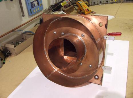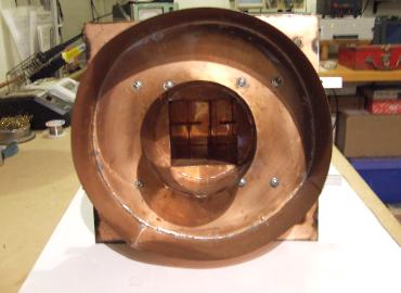 The feed was built out of 0.5mm copper sheet that was bent into the square W/G and the septum was