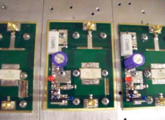 I was searching for a legal limit (VK) amplifier for 23cm amateur band and the choices were to use solid state devices or a valve power amplifier. Many options exist for both methods. A number of commercial amplifiers are available for the 1296MHz band however their cost was found to be prohibitive for the power levels available. After much investigation it was decided to build a SSPA. Single devices delivering 100W + are available but many of these are not currently found on the surplus market. I stumbled across some designs utilizing the MRF286 device. These devices have been around for some time and whilst they were designed for commercial use in the 1-2.4 GHz range they see their main use at 2.3 GHz in “Base station” amplifiers. A number of amateurs have designed suitable input and output matching circuits to make use of them at 1296MHz. The MRF286 or XRF286 are capable of >10dB gain and >60 W at 1296MHz. These devices are available on the surplus market as “pulls” from “Spectrian” 2.3GHz amplifiers. Considering cost and availability it was decided to try to build an amplifier with these devices using 8 of them paralleled to deliver the VK legal limit of 400W. |