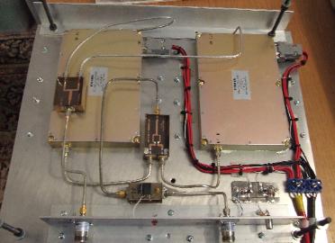 The power amplifier uses splitters and combiners etched on "Ultralam 2000 " teflon board. With
