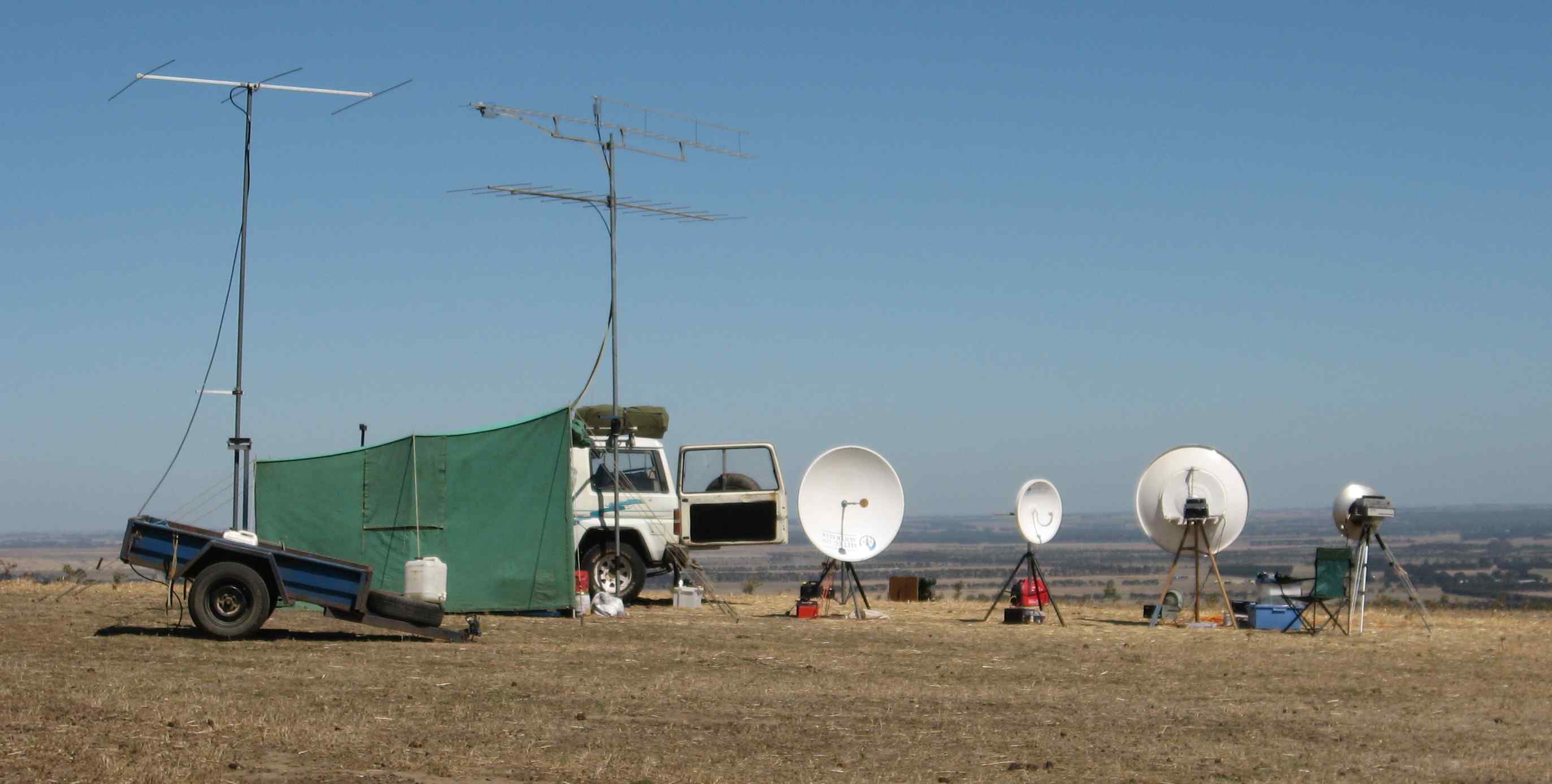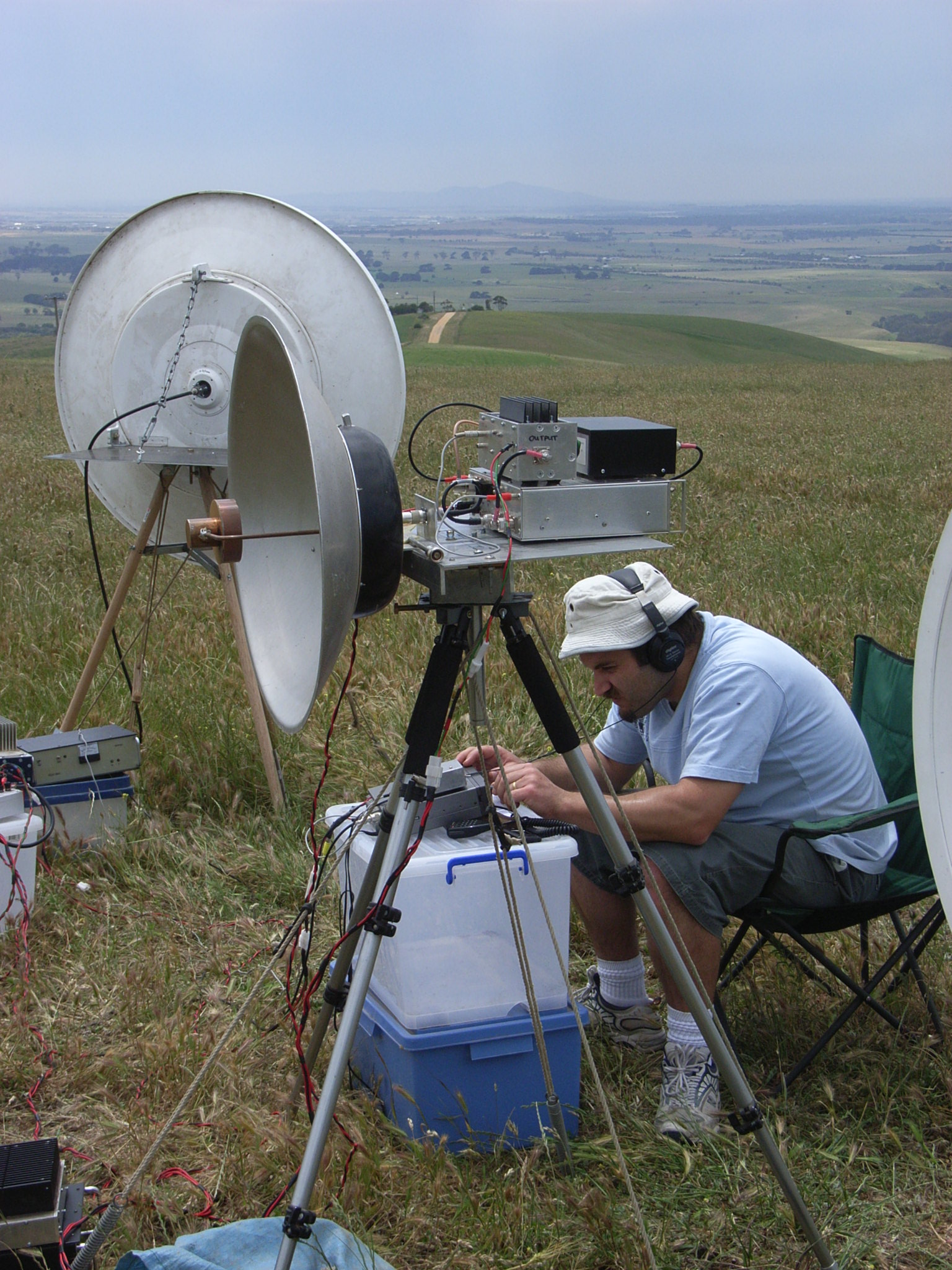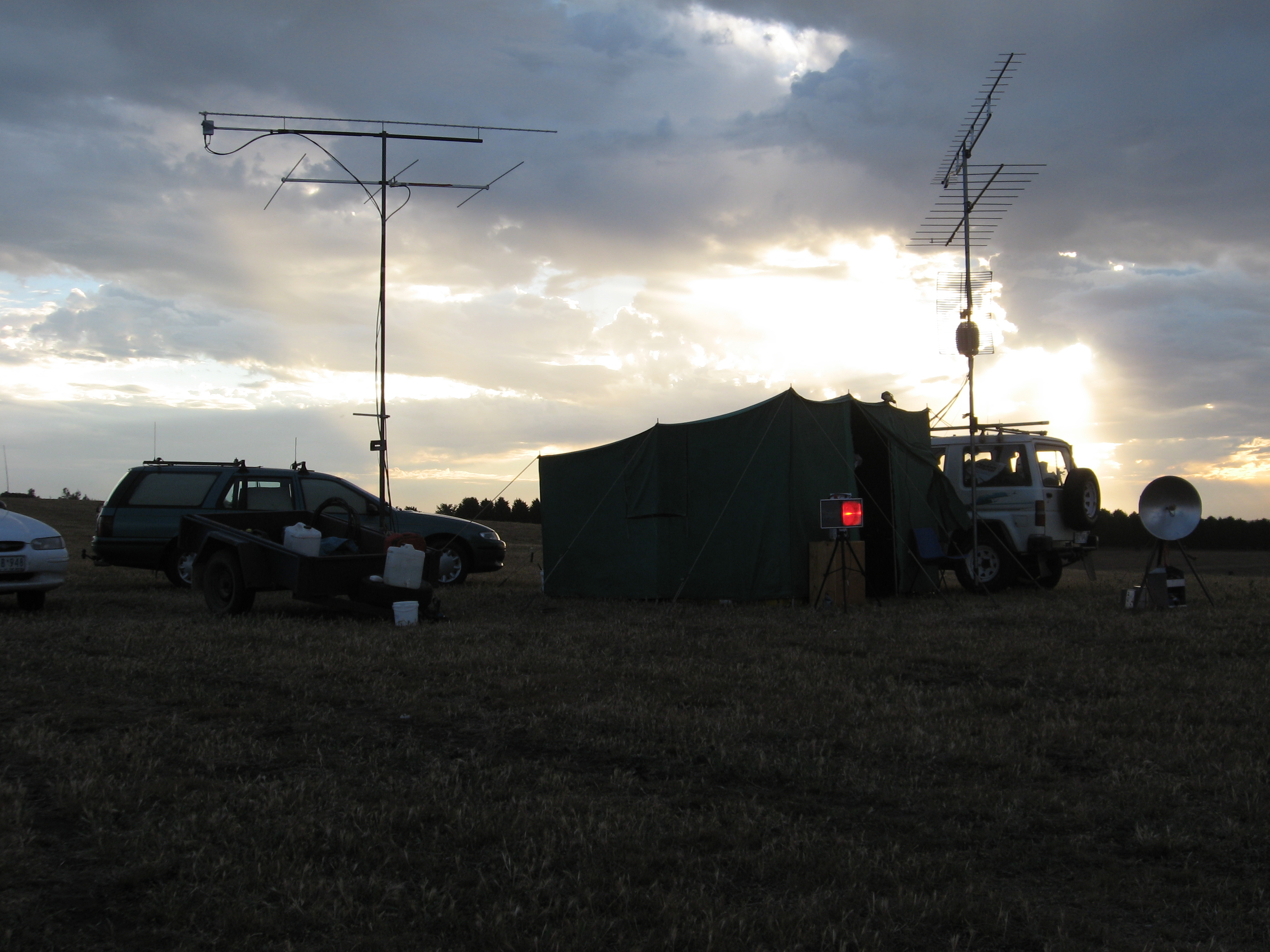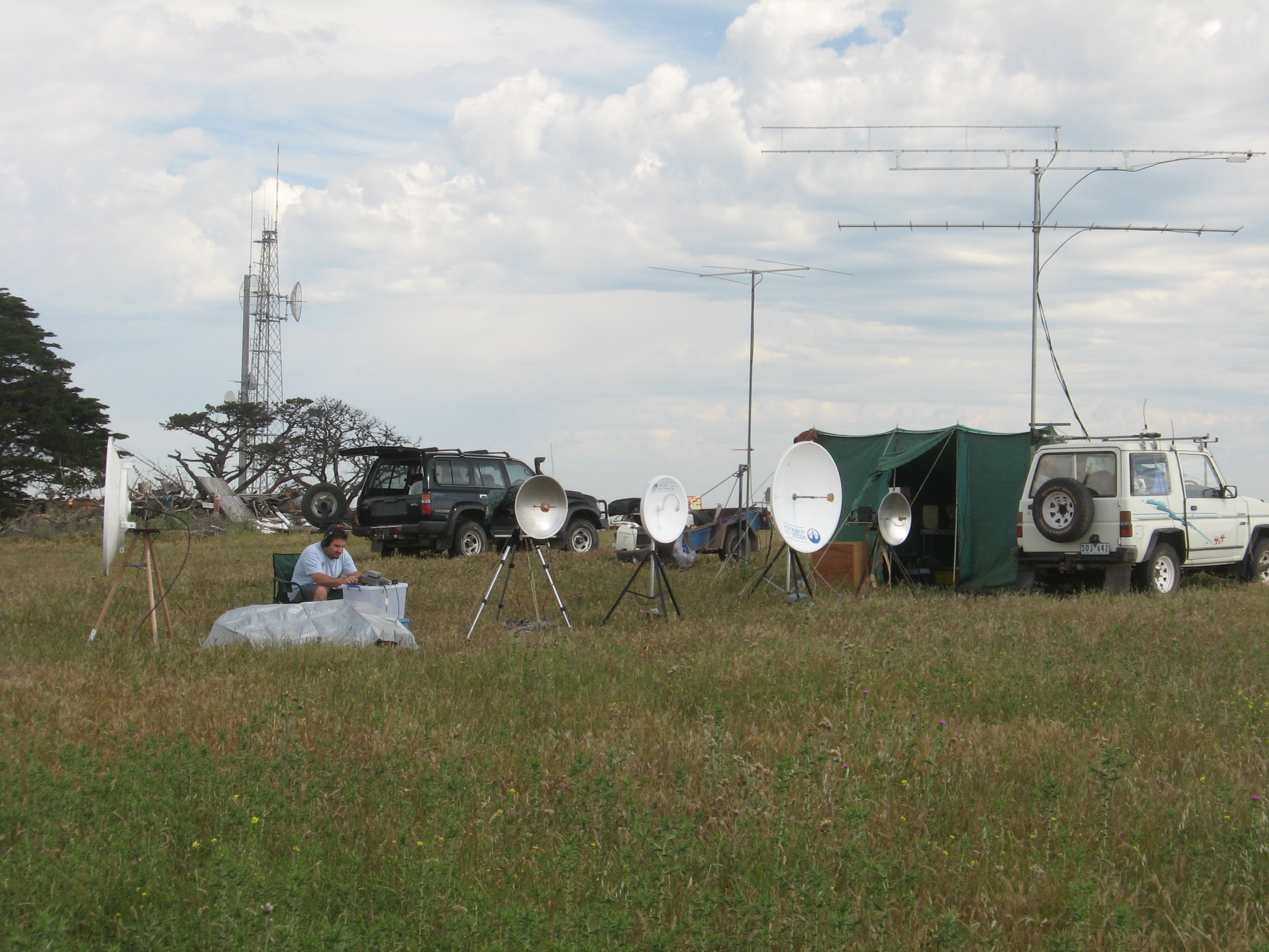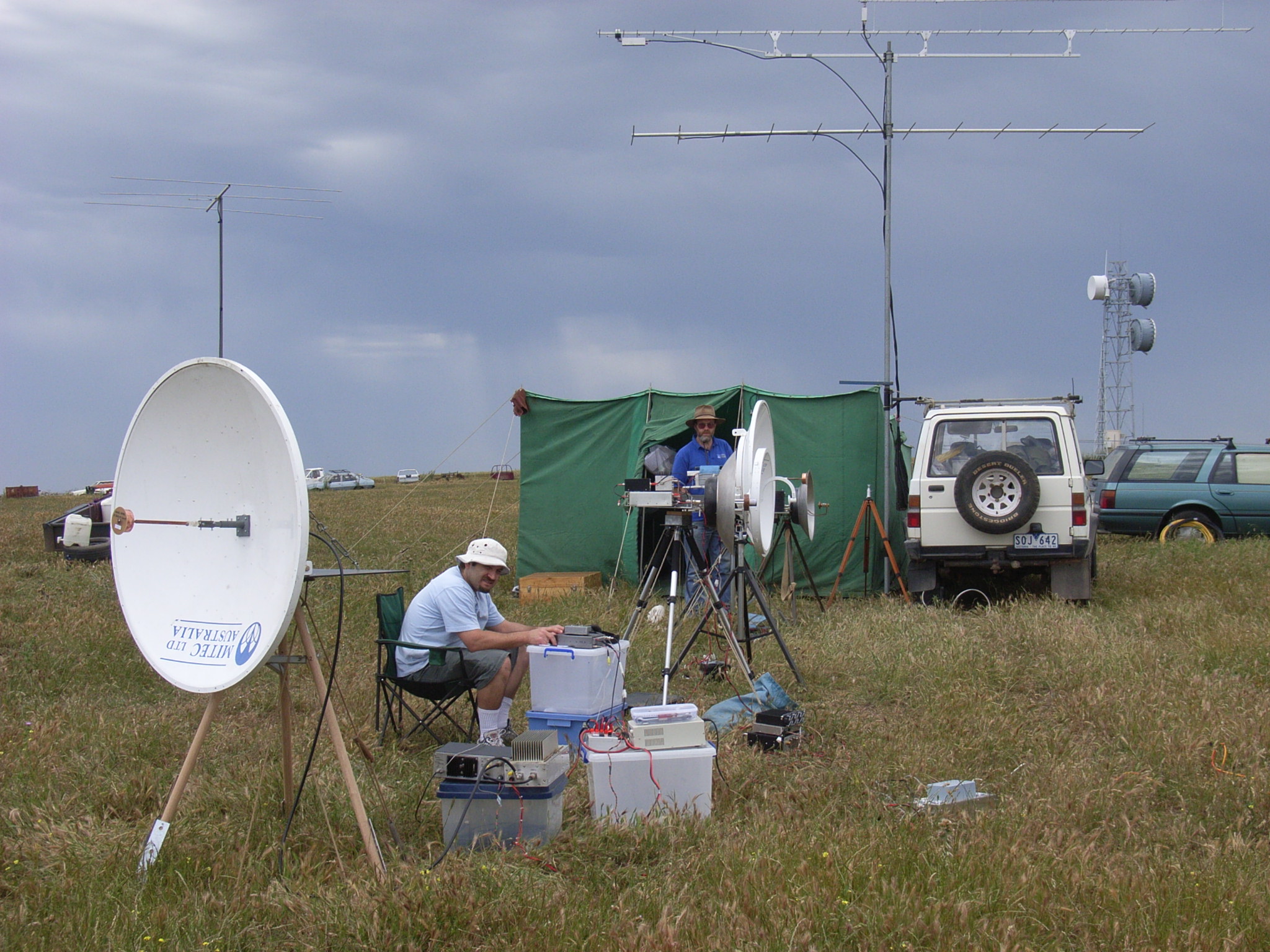 | Field Day Operations 2006 - 2008 Setting up A RARE occurrence! VHF-UHF Yagis uW Operating "Blast we left 1 at home!" "Running repairs on 10 GHz" "VK2AES" 13cm Feed "Working the Dx" "Head Quaters" "Chas Chasing The Dx" VK3QM's Optical Comms 2,70,23 and 13cm "Should we disconnect the Antennas? What is VK3PY doing? Operating desk "Please repeat my report.. Another day in Paradise "I think the EMPTY barrel will resonate on 1296 .....the QRM is SAVAGE" I'll get David and Chas in here...Give us an hour" Soothing the palate after Working the John Moyle FD 10 GHz Night operations a few QSOs VK3QM with 10 GHz Important FD rations Back to the Radio Gear "Natural" and "Man improved" 50 W Transverter on 1296 Portable power YEP...It's still going strong! |
