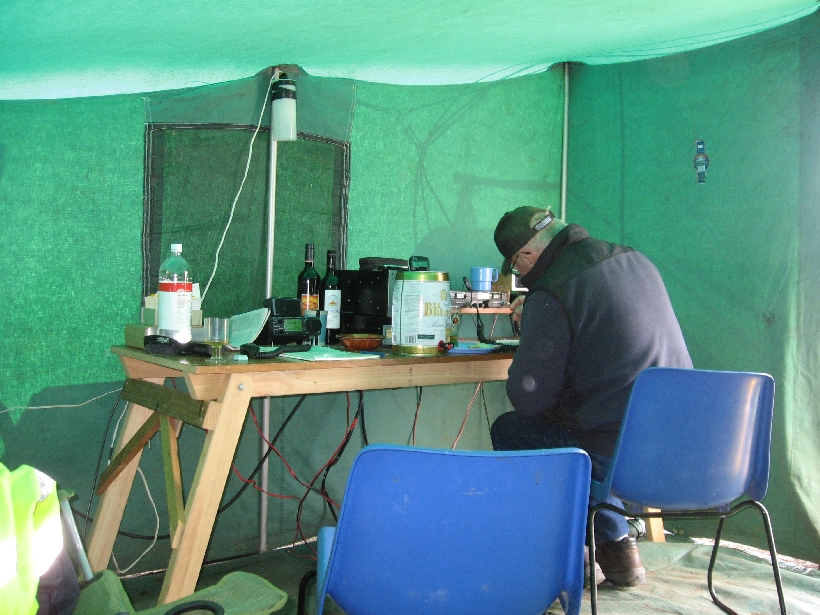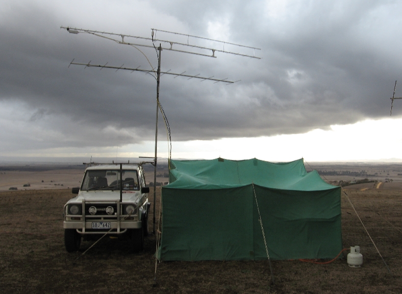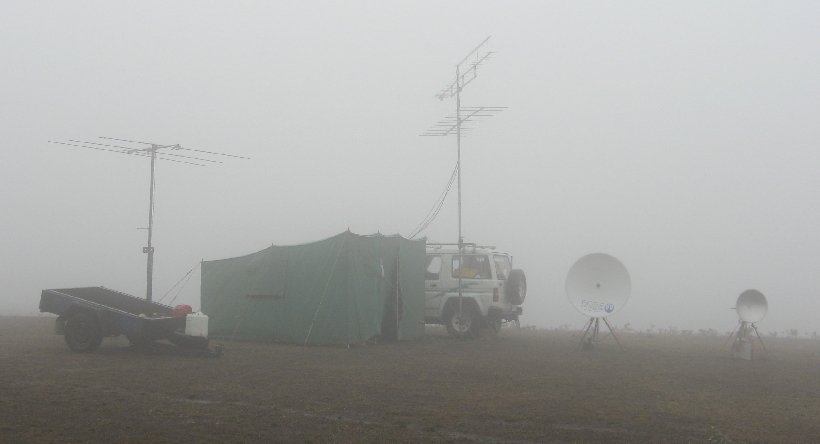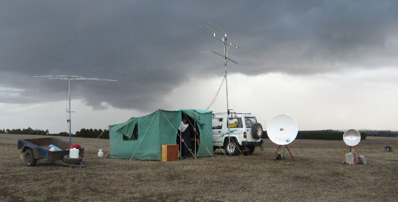 | John Moyle Field day 2009 Despite the inclement weather, David VK3QM and Ken VK3NW braved the elements to activate the field day station in the John Moyle field day contest. (The hilltop never looked so wet!) |